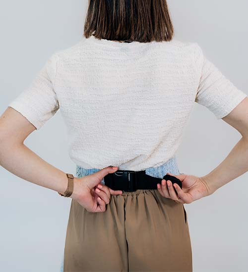 Fasten the belt using the safety loop and buckle.