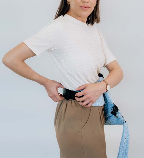 Position the open carrier at your waist.