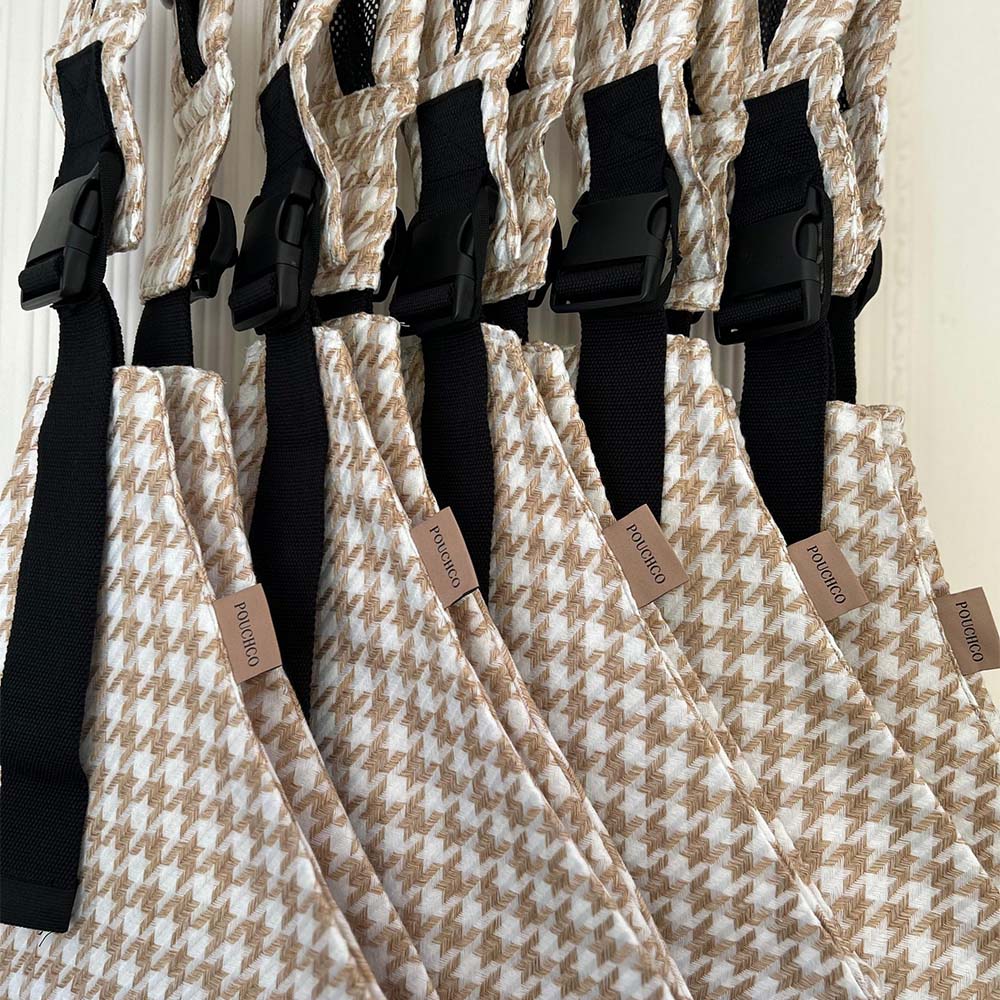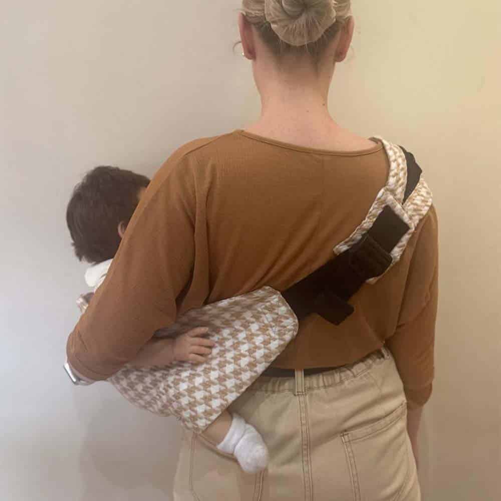 The PouchCo Adventurer Ergonomic Toddler Sling Carrier in Light Brown Plaid is a stylish, lightweight solution for comfortable toddler carrying on the go. Designed as an ergonomic shoulder sling, it supports healthy hip development in the natural ‘M’ position while distributing your toddler’s weight more evenly across the hips and lower back—reducing strain on arms and shoulders.
