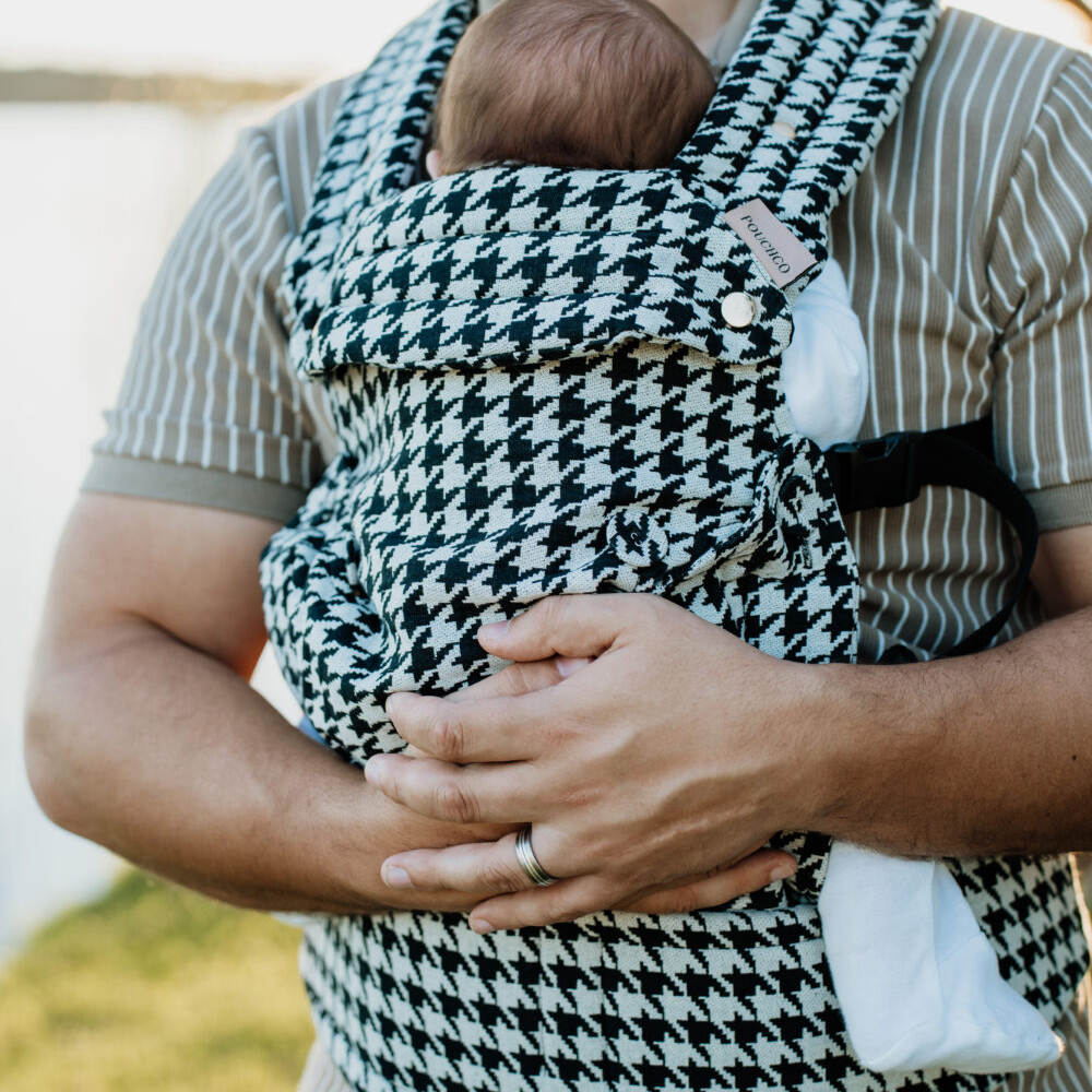 PouchCo Comfort Baby Carrier – Black & Grey Houndstooth