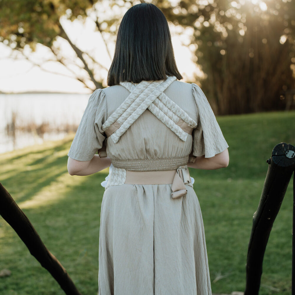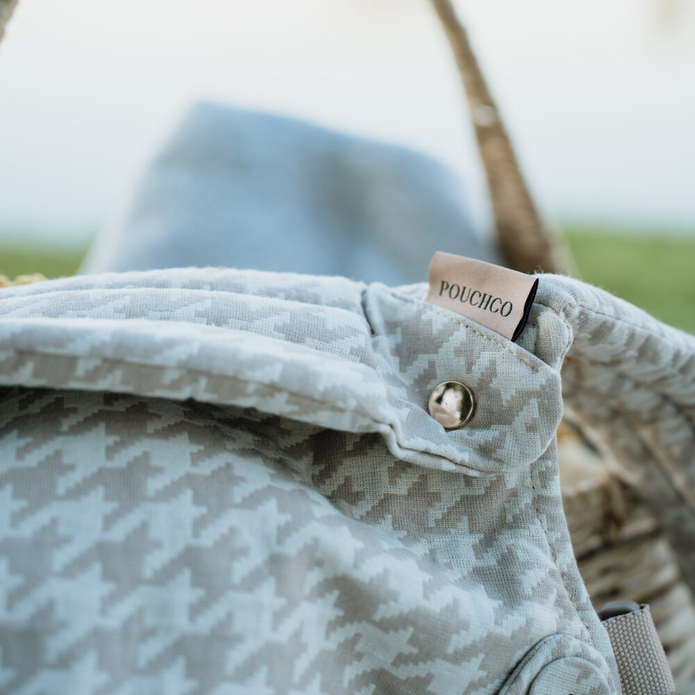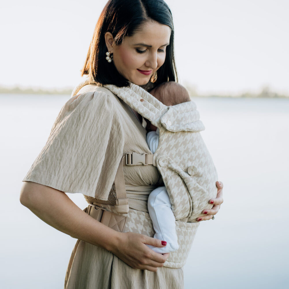 PouchCo Comfort Baby Carrier – Beige & White Houndstooth