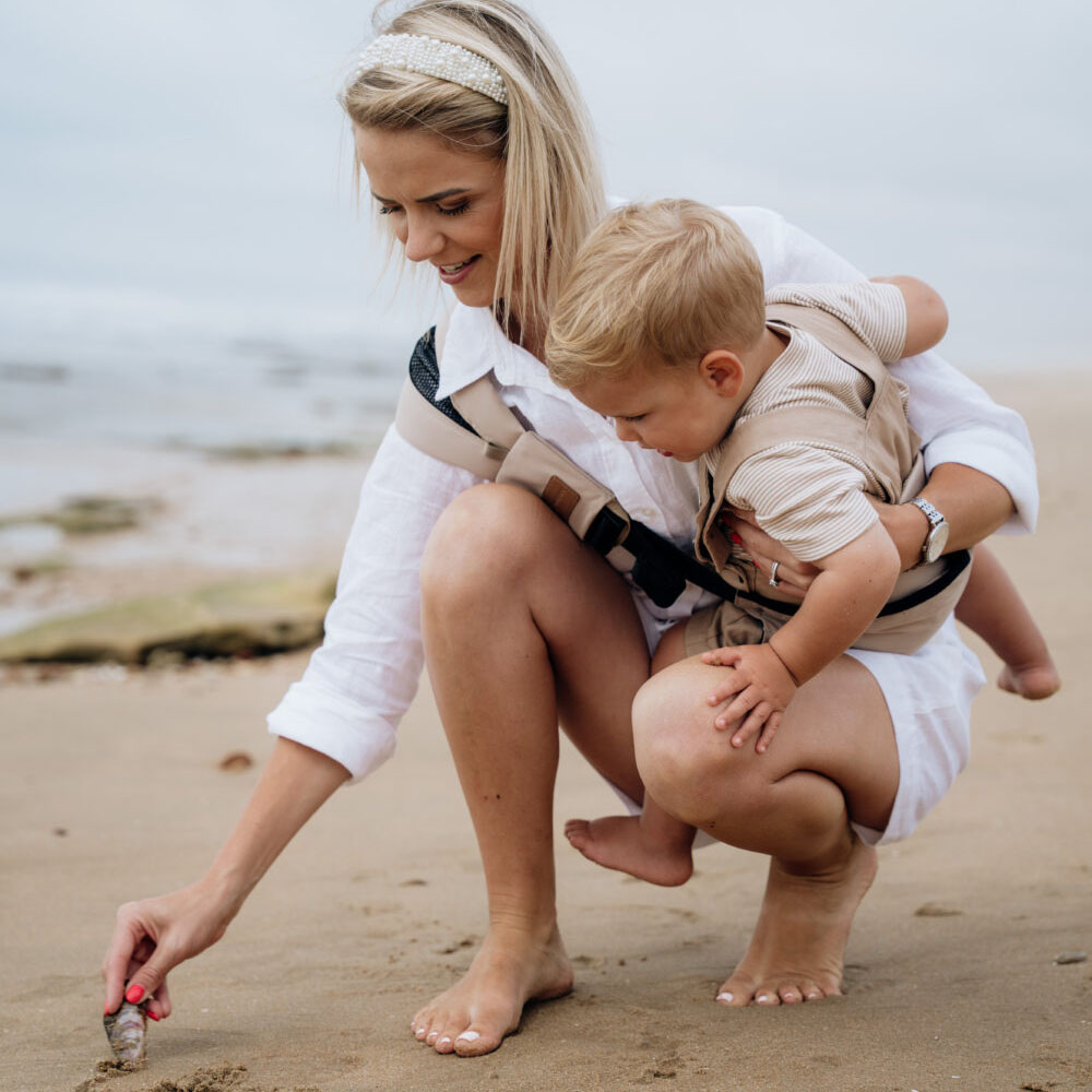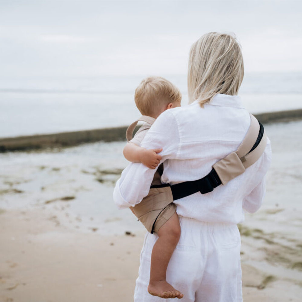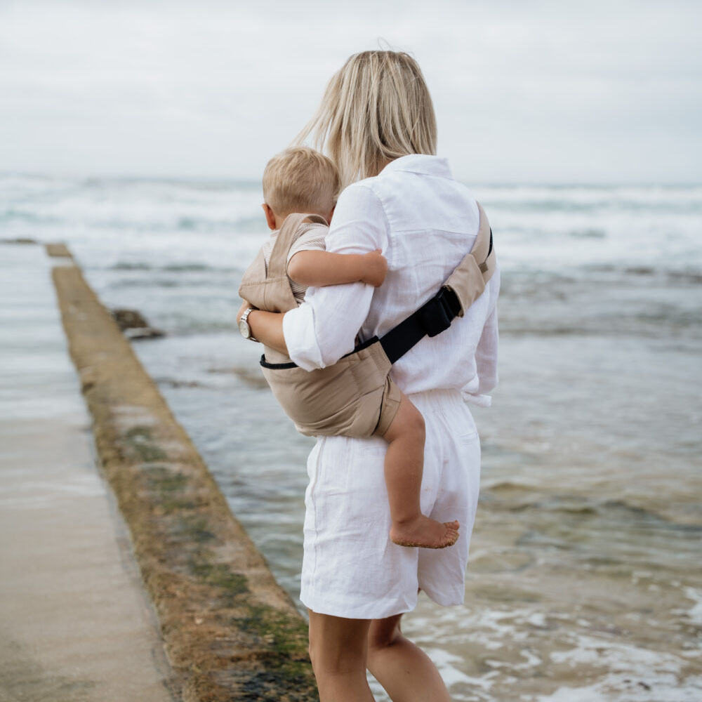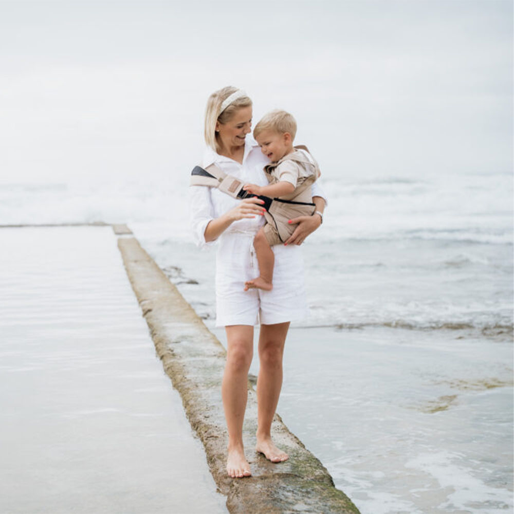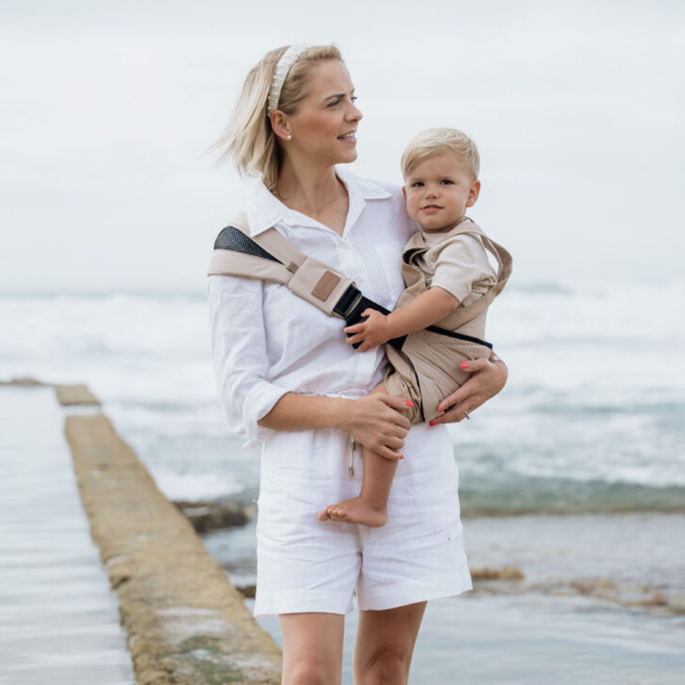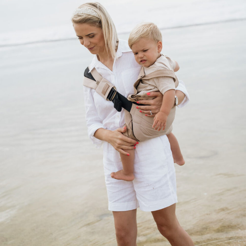 The PouchCo Totterrain Ergonomic Toddler Swing Carrier – Khaki Beige with Non-Slip Seat & Breathable Shoulder Strap is a stylish, lightweight solution for comfortable toddler carrying on the go. Designed as an ergonomic shoulder sling, it supports healthy hip development in the natural ‘M’ position while distributing your toddler’s weight more evenly across the hips and lower back—reducing strain on arms and shoulders. With extra convenience, the carrier has a place to tie keys or a pacifier.